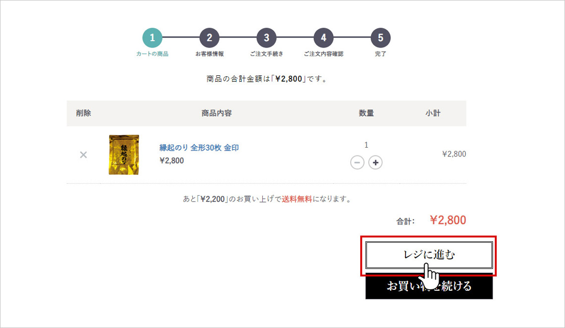 商品と数量を選び、「カートに入れる」ボタンをクリックしてください。